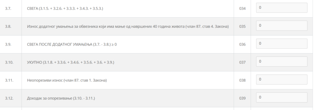 Ako je podatak na rb. 3.12. veći od nule, sledi dalje umanjenje za lične odbitke.