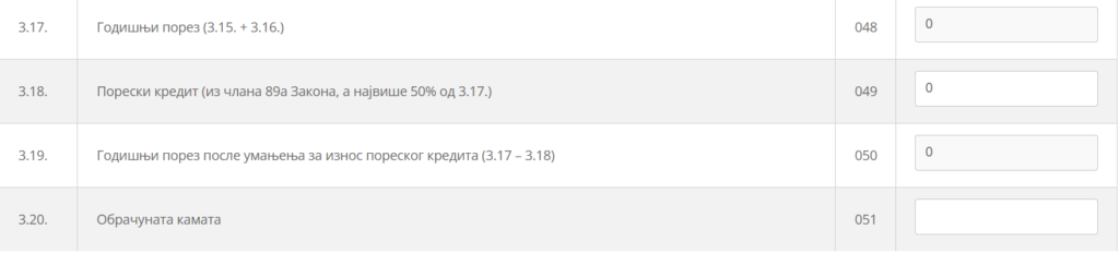 Obračunati godišnji porez za plaćanje iskazuje se na rb. 3.17. poreske prijave.
